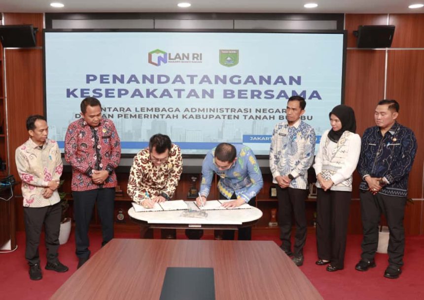 BATULICIN – Pemerintah Kabupaten Tanah Bumbu (Pemkab Tanbu) resmi menjalin kerja sama strategis dengan Lembaga Administrasi Negara (LAN) Republik Indonesia melalui penandatanganan Nota Kesepahaman (MoU) dan kesepakatan bersama tentang Penyelenggaraan Pengembangan Kapasitas dan Pembelajaran Aparatur Sipil Negara (ASN) di lingkungan Pemerintah Kabupaten Tanah Bumbu. Penandatanganan dilakukan Jumat, (24/10/2025) di kantor LAN, Jakarta.