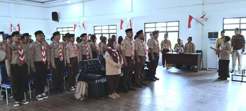 Wabup H. Bahsanuddin Sematkan TISKA kepada Kontingen Pramuka Tanah Bumbu